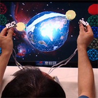 Howdo they do it? As you’ll see in the video, you’re nubs are represented on a screen as two spheres… spheres of 3D bending power, lessened only by the ridiculous wires coming out of your fingertips and the array of camera that surround you.