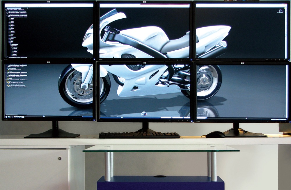 So, even though it seems freakin’ silly cool to use six screens for product design, it is now possible. ATI even did a case study with Dassault Systemes (pdf), makers of CATIA and SolidWorks, where Christophe Delattre of DS R&D states, “A powerful graphics card is mandatory when handling large data sets in an application like CATIA…” [Emphasis added] Are you CATIA users ready for 6 monitors?