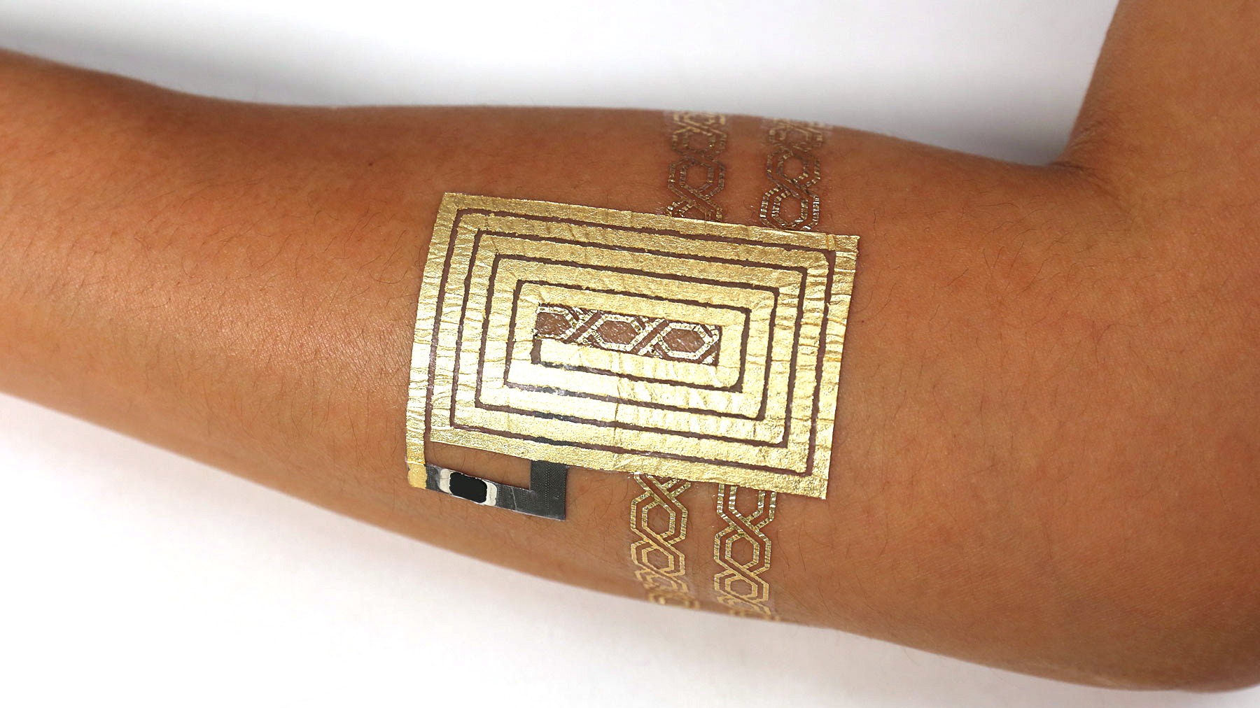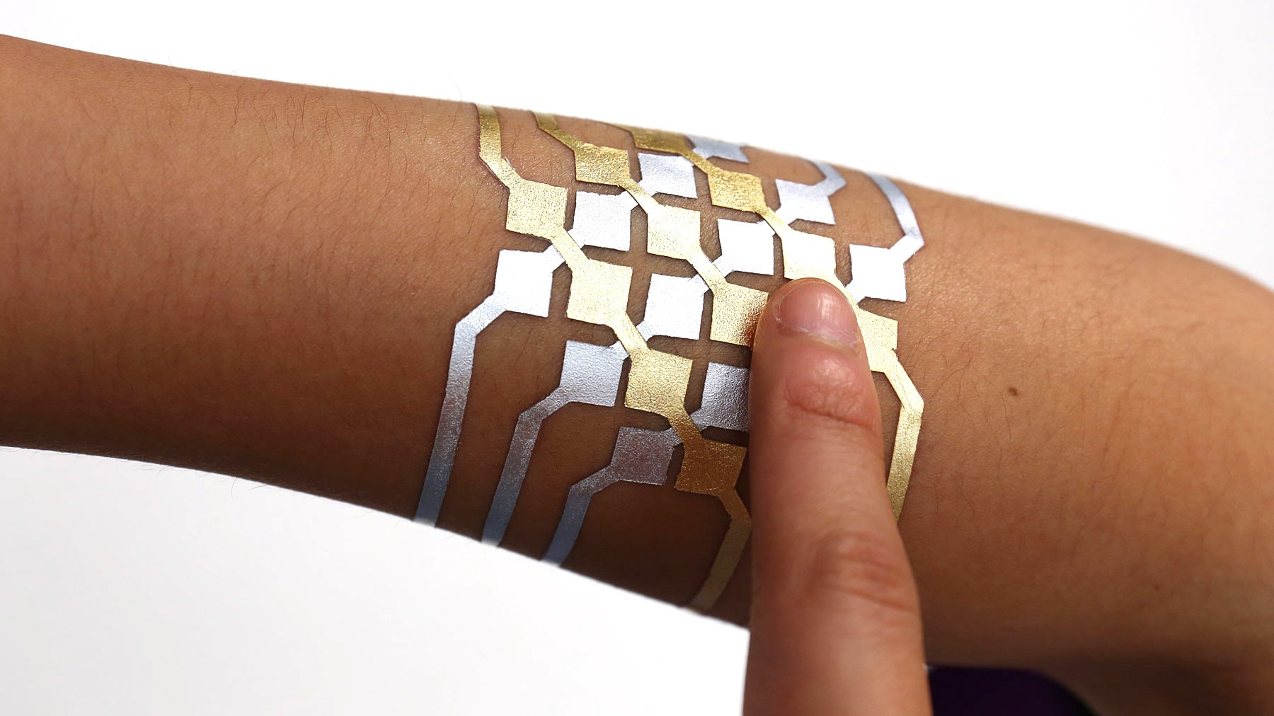 Flash tats and metallic jewelry tattoos are all the rage among the fashionistas. Why? Well, they can be used to aesthetically augment traditional metal jewelry or make you stand out from normal tattooed people. And you know what? Turns out they can also be used as on-skin electronic connected interfaces for any number of devices or applications.