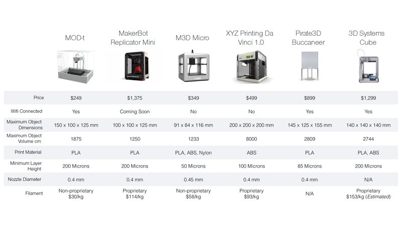 MOD-t also scores high on simplicity; the fairly unique and intuitive software interface looks to be easier for new users to use than MakerWare. Frog Design is also involved in building a suite of companion apps, so can expect the simplicity flow in there too. Being Wi-Fi enabled helps, since something like the MakerBot Replicator Mini lacks the feature. The comparison chart provided by New Matter spells it all out for us. Speed wise, the MOD-t prints at 80mm per seconds, placing it in the middle position, which is a good start. It matches up to MakerBot’s Replicator Mini and 3D System’s Cube in terms of printing from a spool of biodegradable PLA.