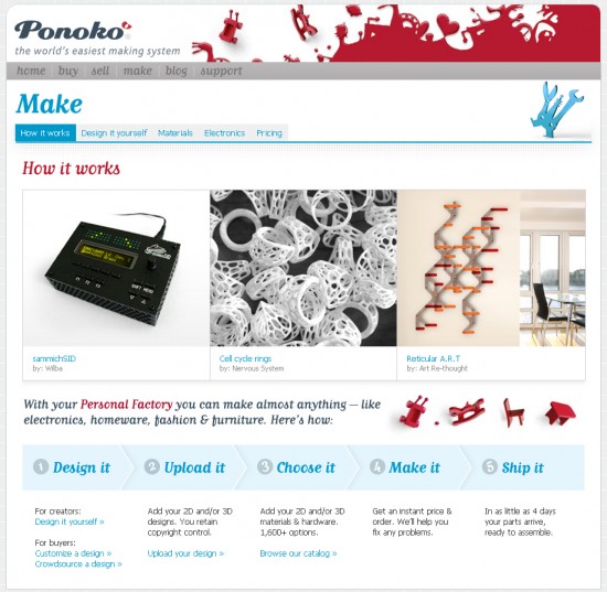 This is certainly a new direction for custom built product design. The internal components dictate, to a certain extent, the external package. This opens up design, helps introduce the whole idea to people who are new with DIY fab, and lets the idea people explore existing designs and inspire others. See how it all works and get in on the action at Ponoko.