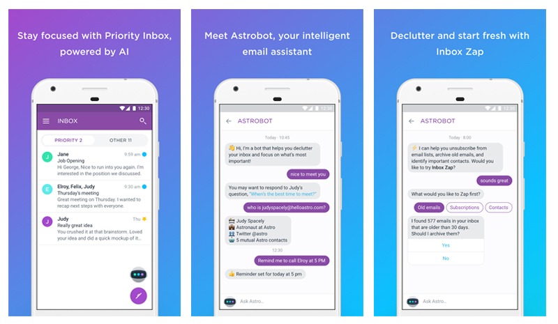 Intelligent, modern email app for Gmail and Office 365 with a chatbot that helps you declutter your inbox and focus on important messages.
