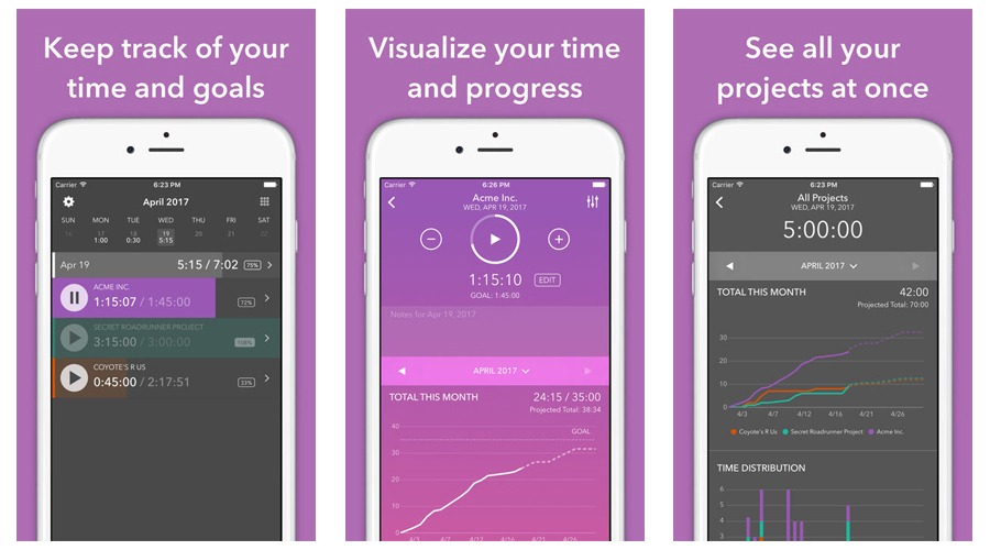 Manifest tracks your time and helps you set and achieve time-tracking goals. Make sure you spend the right amount of time on each of your projects!