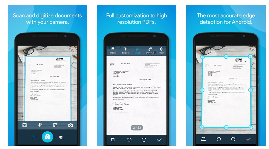 Whether you’re sending receipts to your employer from the field or saving a magazine article for later, Quick PDF Scanner will help you scan and digitize your paper documents with ease.