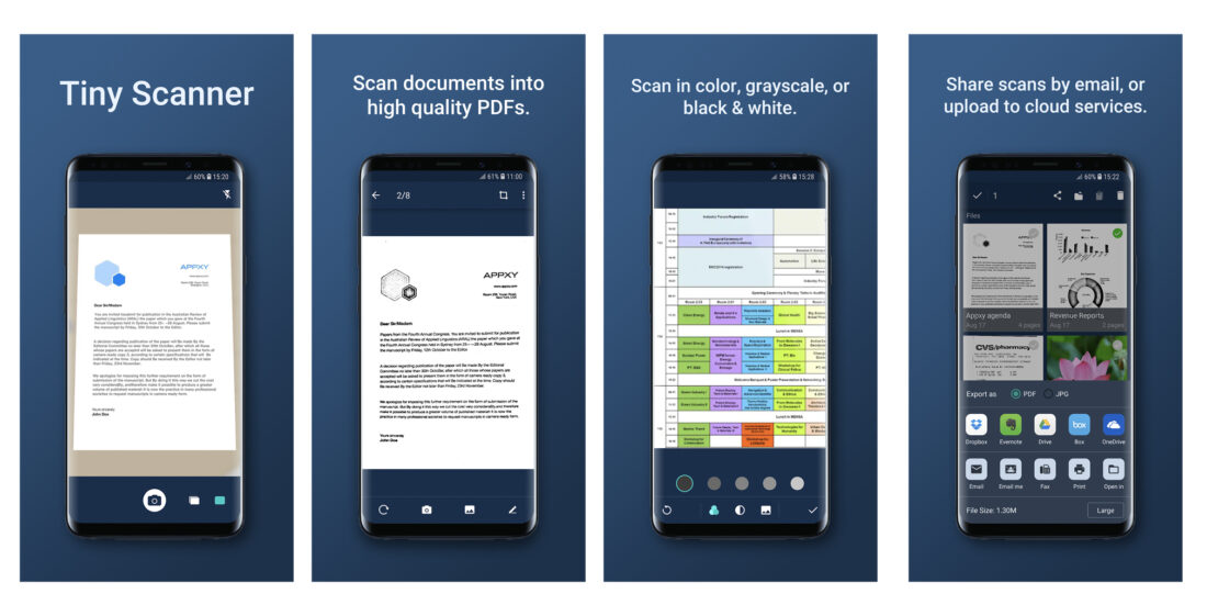 Tiny Scanner turns your device into a pdf portable scanner. Scans are saved to your phone as images or PDFs.