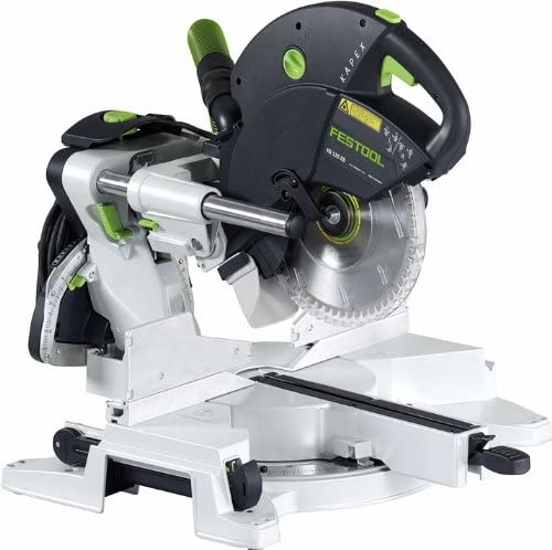 The design of the rail forward increases precision and creates a compact footprint while at the same time prevents head play ensuring accurate cuts. It can align cuts from left to ride with ease using the dual laser. The lasers help to clearly define the material that needs to be cut. This saw comes with a micro-adjustable bevel angle that has an upfront rotary knob, fine pointers and a large bevel scale that easily set precise angles. Has a 91% dust extraction behind the cut dust hood and a 36 mm hose pivoting. Its knob rotates and engages the pinion and rack to move the head that is a counter spring balanced.
