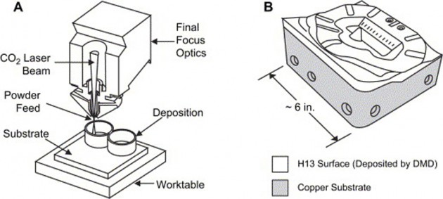 The advantage of this machine is that they have developed a way to use Direct Metal Deposition (image explaining it below, link goes to paper) to create parts with several different metals. Sandwiching copper to conduct heat away from the piece and cool it faster means that more parts can be made with one mould at a quicker pace. Australia’s high labour costs impact competitiveness with China or India. With this machine, researchers argue, labour productivity can be increased. In the long-run, multiple material metal printing would be a real paradigm shifter. I can’t imagine what the properties of a macrolatticed alloy would be like, combined with the massive design envelope that 3D printing has.