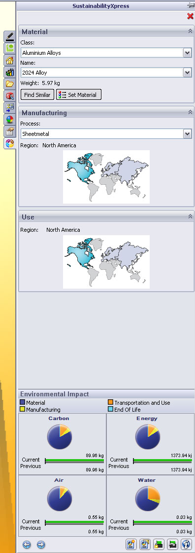SolidWorks has partnered with, PE International to use their Life Cycle Assessment data which analyzes the ecological impact of different materials along the life of the material as it is used in manufactured products.