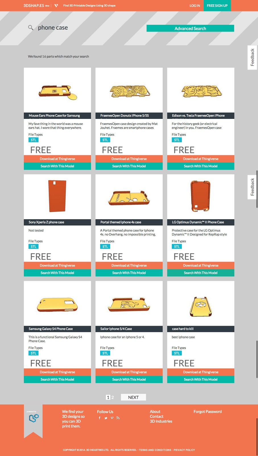 3D shape search isn’t a new art, but it’s not common. We’ve seen ShapeSpace’s (now defunct) Part Browser and, more recently, 3DIndustri.es (3DI) 3D Part Source. 3DShap.es is similar to 3D Part Source (even down to the website appearance), but with a different focus. 3D Part Source focuses on sourcing 3D parts of your 3D models, 3DShap.es focuses on 3D printing parts of your 3d models.