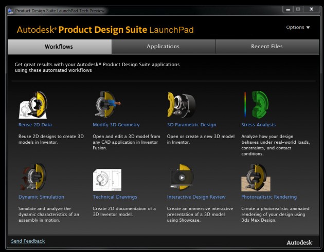 labs.autodesk.com/utilities/launchpad/ – You can see the list of software and services going server-side down below, but here, this right here is the form your web-based CAD life is really going to take. Autodesk Launchpad is a Technology Preview quietly launched yesterday from Autodesk Labs. This app is specifically for those using the Autodesk Product Design Suite. Now, it’s not accessing your data on the Cloud, it’s not accessing software on the Cloud, it’s not even a web-based app… Yet. You can imagine how it could be though and it’s a perfect example of how your future software and service access will be delivered.