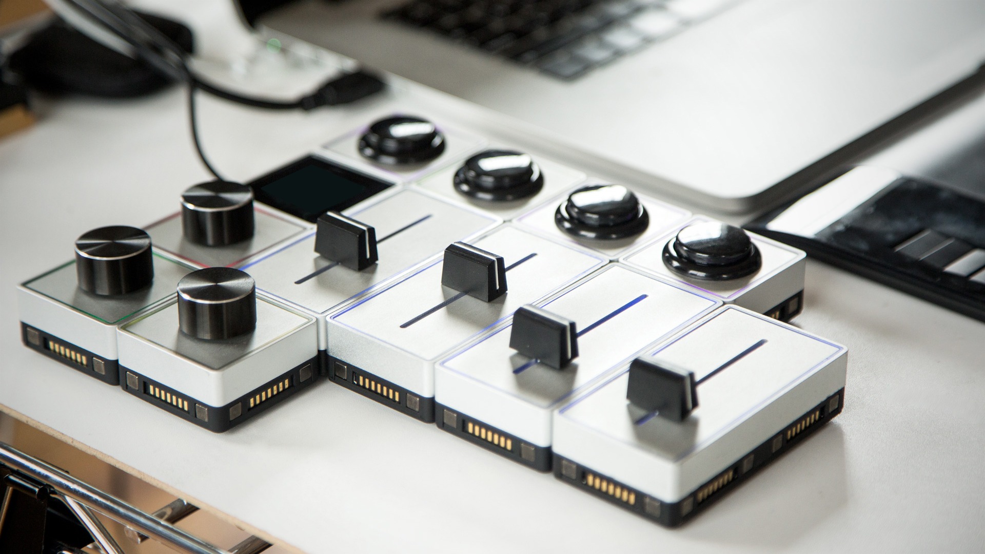 Founded in 2013 by product designer Calvin Chu, Palette is a modular computer control interface platform that consists of snap-together sliders, dials and buttons that are similar to the controls found on a DJ’s mixing board for manipulating tracks. When different components are used to build a personalized system using Palette, a user can ultimately create their own expandable personalized analog computing interface.