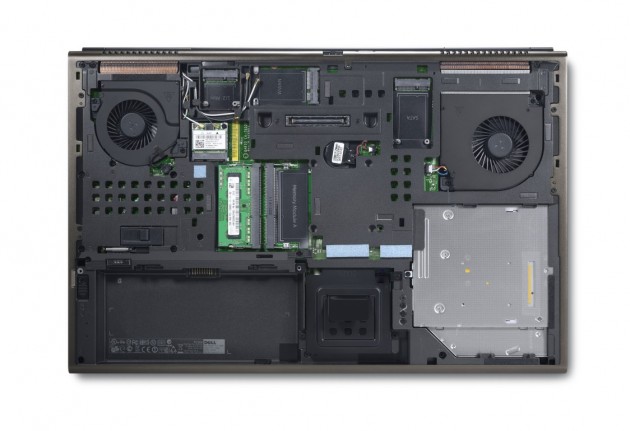 These hefty machines were designed for increased uptime and dependability while working in coffeeshops, airports, or your office. They feature a durable aluminum and magnesium alloy chassis that’s MIL-STD 810G tested, the lightest 17-inch design and “all-day” battery life options. The new workstations also have dual fans and cooling vents that were noticeably quiet during the demonstrations. Another first for Dell is the easily ejectable hard drive caddy for customers working with large volumes of data who may need to swap out that drive in the event of an emergency.