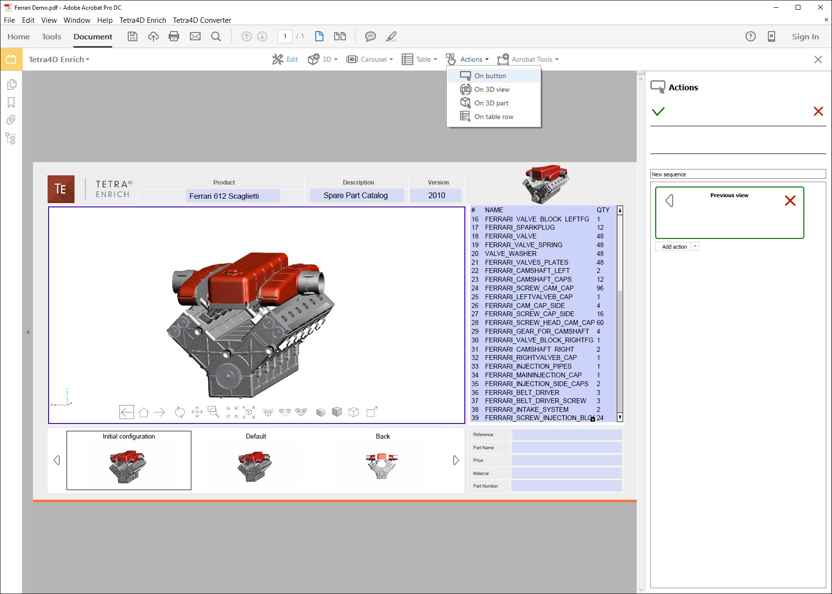 Isn’t a 3D PDF good enough? Well, if you actually use 3D PDFs, congrats, you’re a step ahead of everyone else. What Enrich does is provide a way to add, yes, a 3D viewer to the PDF… plus parts list, plus viewing options, plus entry fields, plus conditional actions and more. It’s the option you want if you’ve ever wished you could customize that 3D PDF or simply make sharing your 3D data better and safer. They’re simple to make as well. If you’re familiar with placing and editing elements in Acrobat already, this works exactly the same. So, let’s go through the process and show how you can have an interactive PDF in 4 easy steps. Note: The screenshots below are taken in Acrobat Pro DC.