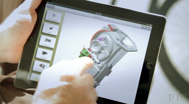 When viewing, you don’t have rotation damping and standard orthographic views are not available (unless you save them with the model), but the view snaps at 180 degrees when the 3D model is rotated and touching a part highlights it with a subtle transparent chartreuse color. You can download Creo View from the iTunes app store with additional example models available at ptc.com/go/creoviewmobileviewables.