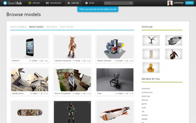 I heard of the Sketchfab model publishing platform back in April of 2012. They launched their redesigned site and Pro service ($12/£7/9€/month) this past August which introduced private sharing, password protection, unbranded viewer and storage up to 100 models. Based on models views alone, they have quite an active community. However, they’re not focused on the editing, annotating collaborative aspects of a model-sharing community. Alban Denoyel, Co-founder & COO tells us, “our focus is perfect display and super easy interface.”