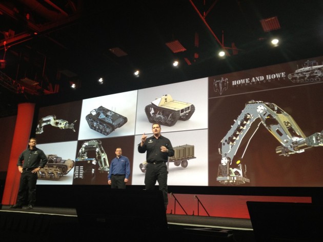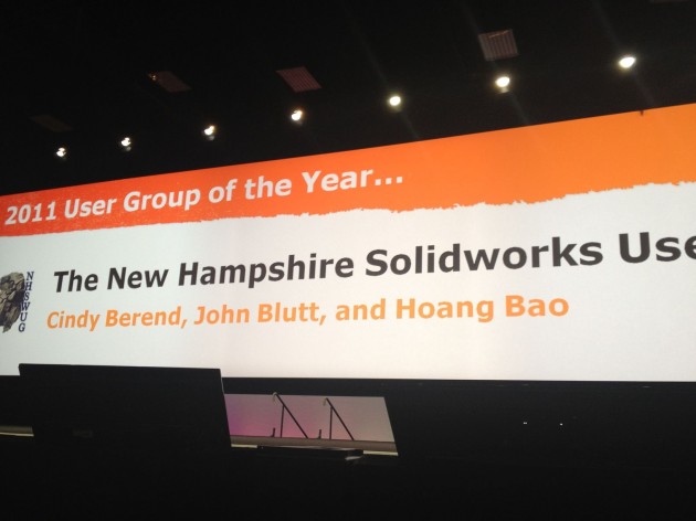 SolidWorks World day 2 kickin' off. People literally sprinting into the general session!Nao robot intro to the show... Rawk.Fielder Hiss up on the stage wishing everyone a happy valentines day.Recap of the CSWP party on the Midway aircraft carrier Monday night. 57 additional CSWP since Saturday. Next year's party will only be for CSWE's. Too big (800+ at party last night)Richard Doyle givin' props to the user group leaders. Doyle: Mucho love for the ug's.New Hampshire SWUG is user group of the year. Group leader of year, Rachael York.SWUGN community Award goes to @charlesculp way to go Charles!First customer story: Black Ops brothers, Geoff and Mike Howe: Geoff Howe: first project was a log cabin. Symbolizes where they wanted to go. Bigger, badder. Geoff Howe: log cabin was built with a hand ax. Cut down all the neighbors trees to do it. Mom not happy.Mike Howe: ripsaw and other machines. We innovate because that's what we do. (great energy between the brothers.)Mike Howe: push the envelop, try to find no limitation, solve bigger problem (making chainsaw-like tracks.) Mike Howe: let's solve each individual problem first. not getting overwhelmed by big picture. Geoff Howe: How to do it. Howe brother took the DARPA grand challenge. Money? Saved up, solicited sponsors, refinanced house (twice).Geoff Howe: DARPA done. Didn't win. Callback 6 months later... Come down. With $350 went down with the Ripsaw. Mike Howe: No money to get back. Ended up their robot systems were shutting down Army robots.Mike Howe: 6 axis hydraulic robot arm. Weight 300lbs. Can pick up thousands. Designed in 9 days.Geoff Howe: RipChair, for veteran Rocky, gave him ability to do things he enjoys.Fielder Hiss announcing Beta test award winners. Crowd claps.Ben Kaufman, founder of Quirky on stage #SWW12 'inventing is like a reflex, we are all inventors'Ben Kaufman: people taking everyday object, making them better @quirky 2 every week.Ben Kaufman: Where are all the inventors? We stop because it's hard, so damn hard. @Quirky.com changing it.Ben Kaufman: Quirky: helped high school student design and sell a better power strip. quirky helps the inventors get patents, get into production, bring design to market. Invention now accessible. Rinse. Repeat. 2 new products every week. 300+ products. the best feeling in the world, whether baby or product, "I MADE THAT"Ben Kaufman: influence, ownership, revenue share, transparency... All great motivators.Ben Kaufman: boardroom is dead. Future of product development, community + technology + expert team.That's it! General session 2 DONE. More to come. Gas lamp off-site event tonight!