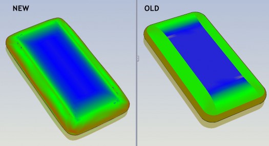 There’s a drastic difference from the old version and new version of the model. Obviously, the curvature wasn’t considered in the first version. The second version is much more consistent. This show the importance of toggling between Curvature Display mode (View, Display, Curvature) and Zebra Stripes (View, Display, Zebra Stripes). For those starting out, put them on your toolbar to access a bit easier.