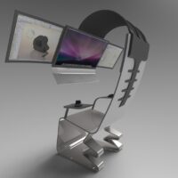 “My design is a hybrid between a digital drawing-board (like the wacom cintiq 21ux) and a highend notebook. With its dockingstation, along with a keyboard and mouse it can used as a desktop replacement, or as a secondary monitor for your desktop.”