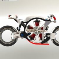 “This is a monowheel bike that uses magnetic repulsion to create a bearing for the wheel to operate. The idea is based on the technology of a maglev train mixed with the McLean wheel.”