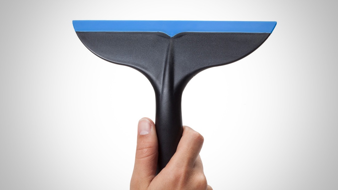 “A whale’s tail! Wipes water splashes from windows and glass doors. Useful in the kitchen or bathroom.”