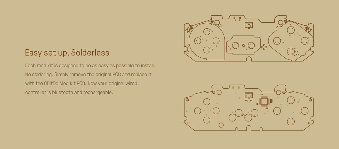 Using their own proprietary component, 8BitDo has created a series of DIY kits which allow you to bring your old controllers into the 21st century: just open your controller up, replace the old circuit board with their new one, and you’re ready to go.