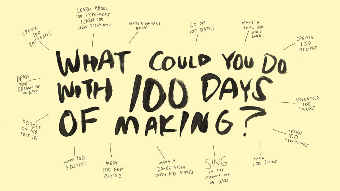 What is the 100 Day Project? “It’s a celebration of process that encourages everyone to participate in 100 days of making. The great surrender is the process; showing up day after day is the goal. For the 100-Day Project, it’s not about fetishizing finished products—it’s about the process.”