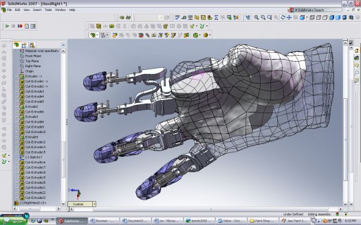 The owner scanned two hand casts, imported them as solids into SolidWorks and fabricated components customized for that individual’s hand.- LDI