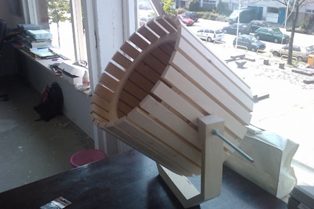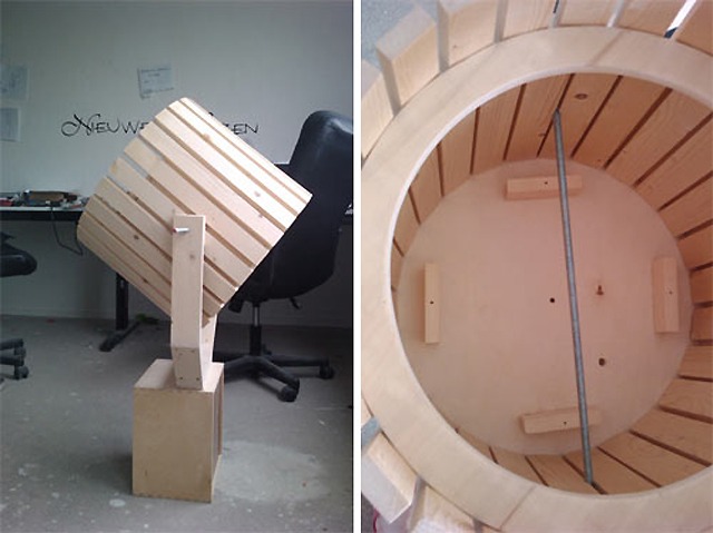 The two-axis light measures 26 inches (66cm) tall with a 13 inch (33 cm) diameter lamp. It’s no small number on the sticker price though. You can buy the light from New Duivendrecht for $800 (649 Euro) – not including shipping on a light with a concrete base. Still, the steps taken to create it are interesting and could even help inspire your own searchlight construction project.