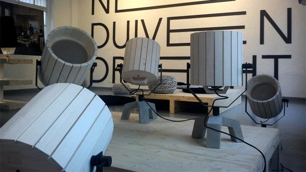 Wood, steel, concrete. It’s a match made in design studio heaven and the perfect combination for an iconic, highly-priced reimagining of the chunky WWII era searchlights that entire Battalions were formed around. Having seen that New Duivendrecht launched the Barrel Lamp light design from design duo Tim Smit and Erik de Nijs of Nieuwe Heren, I thought of the construction process I had seen on how the unique light came together. Here’s a glimpse into the process.
