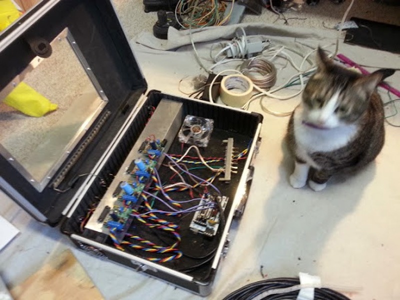 Details on the gear used: The printer is based on the RepRap project with Arduino Mega 2560 microcontroller board (f/w, s/w –Marlin, Pronterface). The future plan is to experiment with the Smoothieboard that should give Andrey an option to use a pause button.