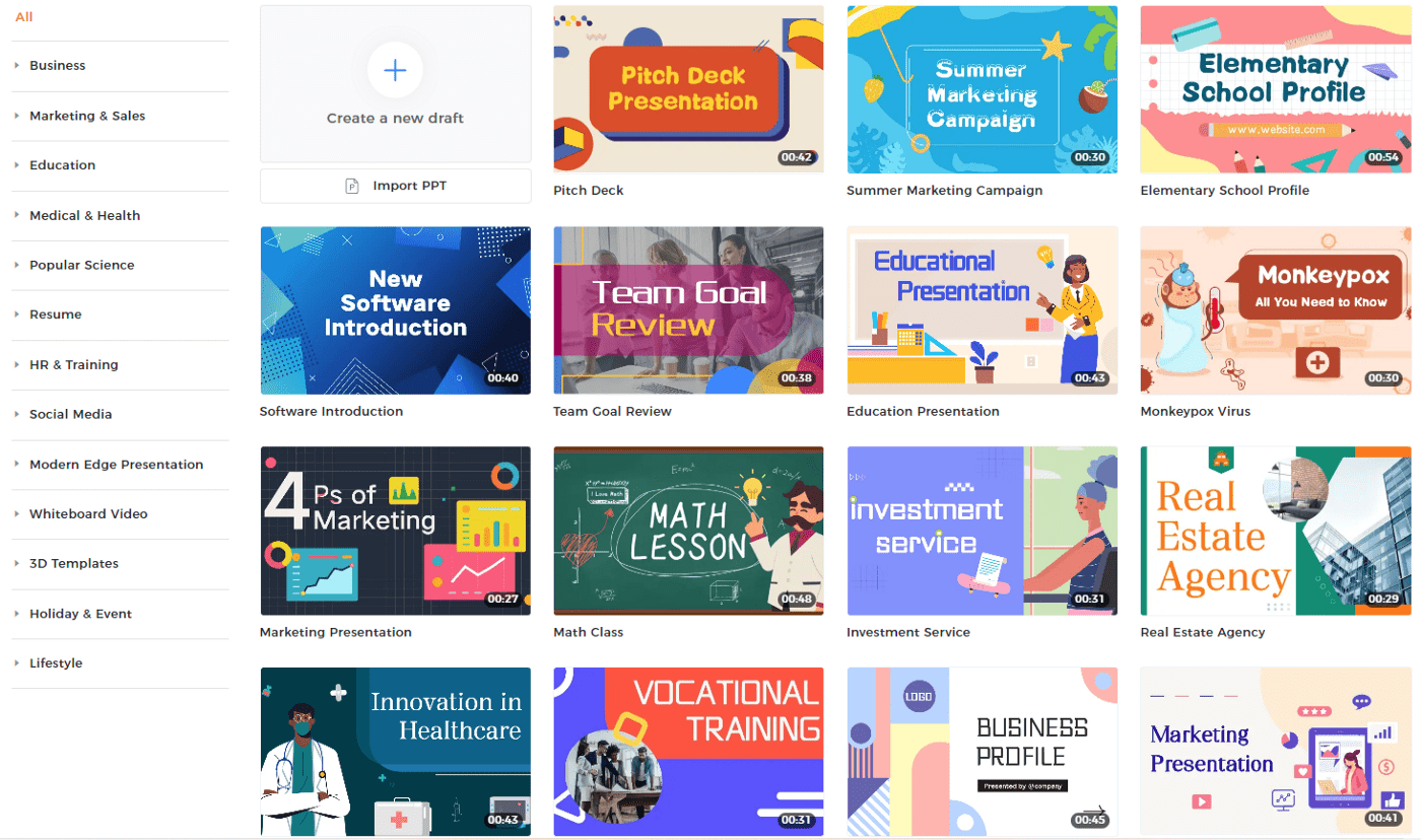 The platform offers millions of royalty-free animations, templates, background images, props, and more. It offers animated templates designed professionally for different industries, including Marketing, Financials, Business, HR, Information Technology, Hospitality, and more. It has exceptional features that make creating animated characters and videos seamless.
