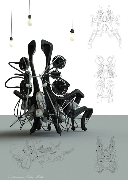 As much as this future living concept could be criticized, you can tell the designer, Eduardo McIntosh, clearly has a great way of forming elements of product design from an architectural perspective. His talent and inspiration is even more evident in his architectural submission as a graduate student at Columbia University (GASPP).