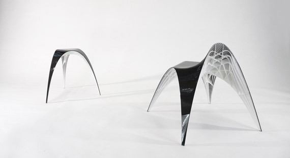 “Gaudi Stool was designed using the same method as Antoni Gaudi, who made models of hanging chains, which upside-down showed him the strongest shape for his churches. Additionally, to be able to determine the structure of the chair’s backrest, a software script was used.”