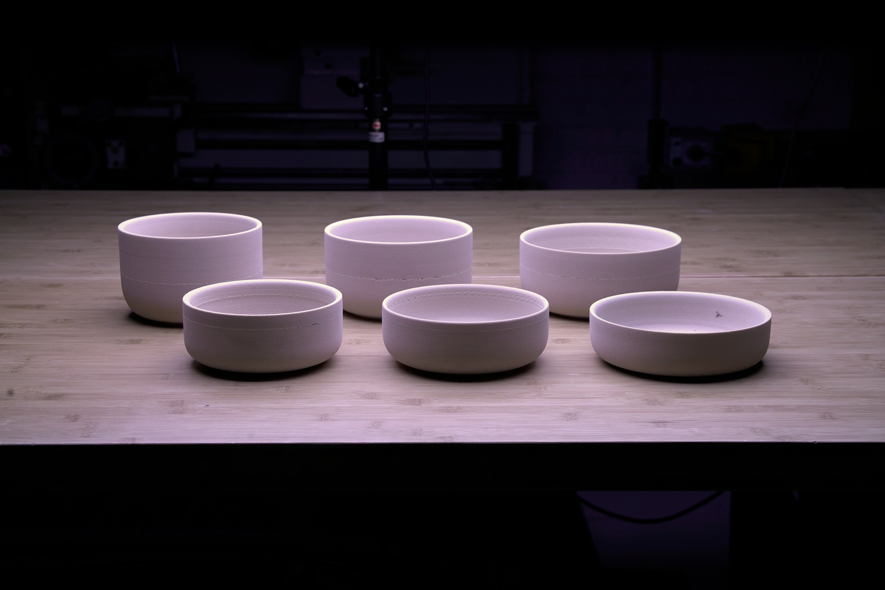 We were developing two container sizes at the time: a six cup and a three cup. They both needed the same diameter to accept a universal lid, so the height of each would be driven off the shared diameter. I chose three diameters that bracketed the diameter I had been targeting in CAD, and calculated the heights for the six cup and three cup resulting in six models needed to fully evaluate the design.