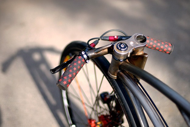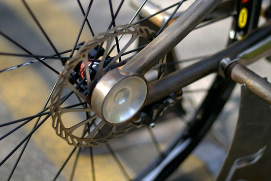 The bike reportedly reaches speed of 50mph, with the 80mph mark within reach. My favorite part on the bike besides everything, is the handlebar. Sleek, minimal… you might as well be hugging the head tube. You can view the speed test on Jeff’s Youtube page and keep up to date with Jeff’s adventures on his blog. If you’re interested in even more photos, check out the Gravity on the Trackosaurus Rex Flickr page.