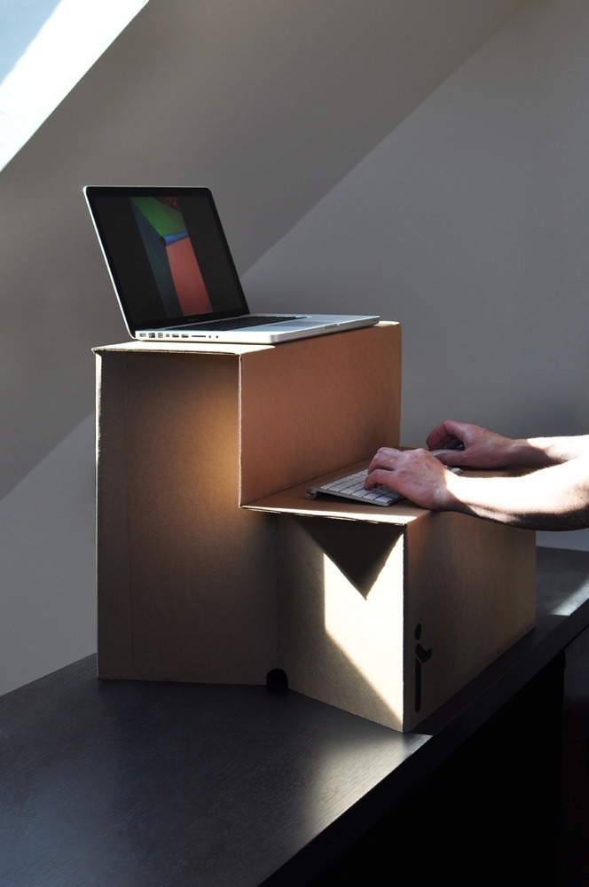 The Oristand is a collapsible sit-stand desk made entirely out industrial-grade cardboard which, of course, makes it’s %100 recyclable. It’s also easy to set-up; no tools or screws needed. Weighing at two pounds, it supports up to 60 pounds, strong enough to hold some laptops, a large screen and a few cats, and wide enough to use a mouse and keyboard.