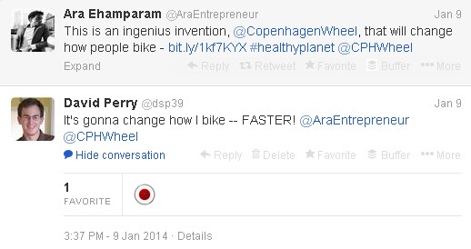 I’m impressed by the level of engagement on the Copenhagen Wheel’s Facebook page. Superpedestrian has been posting content every few days and they are responding to questions in the comments on their posts! Shoot, even their customers are responding to potential customers’ questions — I love it! It’s clear from the page that their community has a life of its own. People are talking to and helping each other, and Superpedestrian is encouraging it. The Facebook page is a glimpse into the community that I get to join when I purchase a Copenhagen Wheel. Not only does this help Superpedestrian sell wheels, but engaged users will innovate and contribute by writing apps, supporting others, and finding new applications for the wheel.