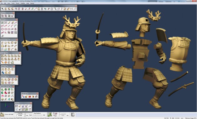 Do Samurais kick? I’m pretty sure they do. Especially after getting an arm or two sliced off. Sensable is taking the sword to 3D Geometry launching the new version of it’s flagship modeling software Freeform, slapping a big ol’ Version 12 on the box and shipping out an app that can take on anything from polygon and voxels to meshes and NURBS. WHAT!? Yes, that’s correct. They can handle all that CAD geometry and then some.
