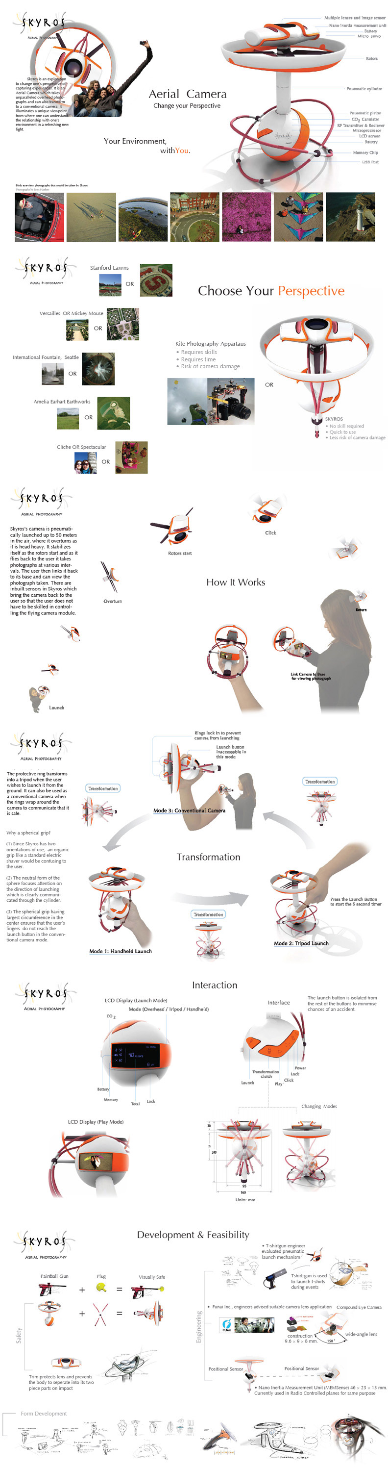 Siddharth Kambe & Dipti Hanako Kambe developed the idea to make aerial photograhpy easy for everyone. Siddharth attended the Pratt Institute and Denmark Design School. The concept is an exploratory look into capturing those special moments from a different perspective… just don’t get wrapped up in that moment and have the camera come flying back at you with rotors blazin’.