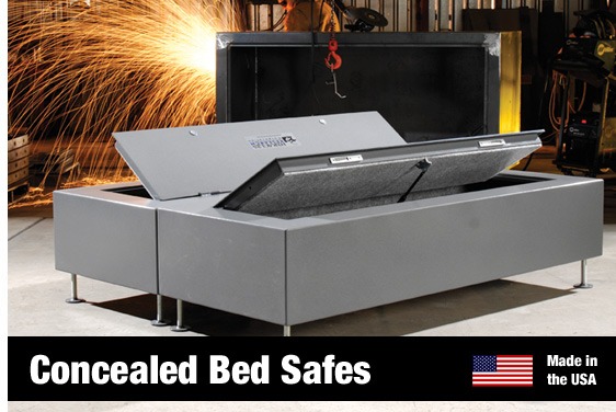Nevermind the rug in that photo above. It’s a technique used to cover up the blood spray after you’ve blasted an offending intruder across the floor with your two Mossberg 930’s. How did you get to them so fast? Simple. They’re stored in your bedframe – the BedBunker – locked away, hidden from those interested in stealing your stash and a mere 10 seconds from unlock, cock and two smoking barrels.