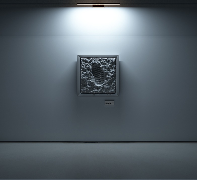 The resulting wall pieces, made from polyurethane and supported by a steel frame, are a clever use of NASA’s archives and a spot-on tribute to the day Neil Armstrong first set foot on the moon.