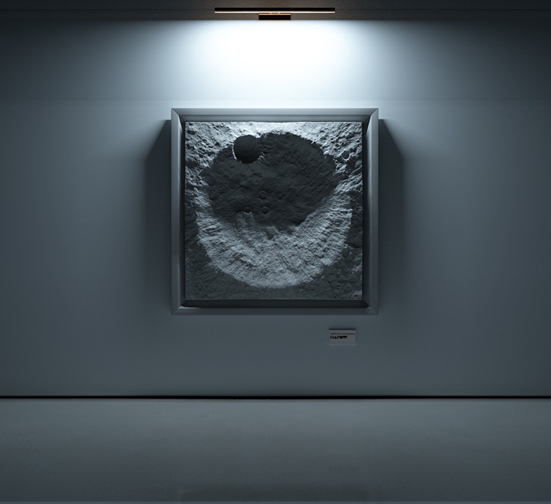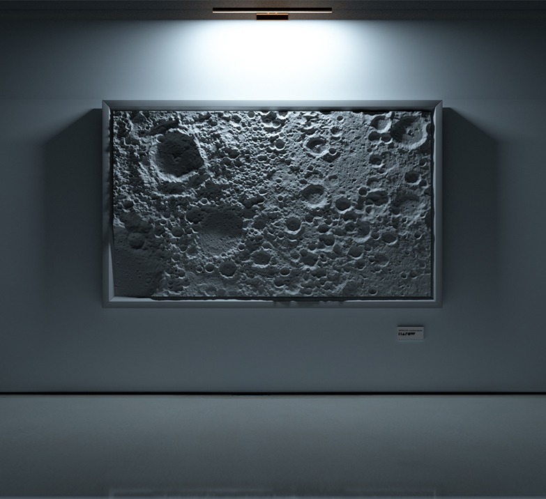 “In order to recreate the topology of the surface of the Moon, it was necessary to obtain digital files from the NASA archives,” explains Harow. “The physical properties of lunar soil are the result of the gradual disintegration of rocks, caused by continuous bombardment from meteorites over millions of years. The three surfaces (of the collection), recreated as mural installations, correspond precisely to areas of lunar earth.”