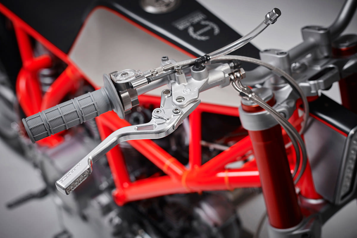 The UMC-038 Marin is a stunning balance of elegance and provocation, with bare metal mechanical parts supporting a bright red, classic Ducati painted frame. It’s a real beauty that demands the respect of its dedicated and enthusiastic designers. And the details… Mmmmmmm.