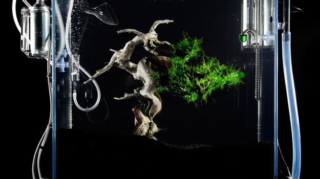 In contrast to a ‘dry’ bonsai, designer Azuma Makoto’s Water and Bonsai is merely just an illusion that flows in crystal-clear water. The underwater tree is actually submerged deadwood (Sabina Chinesis) wrapped in a common freshwater aquarium moss (Java Moss). Ultimately, the underwater bonsai is a well-executed aquarium fixture that gives off the illusion of something else entirely.