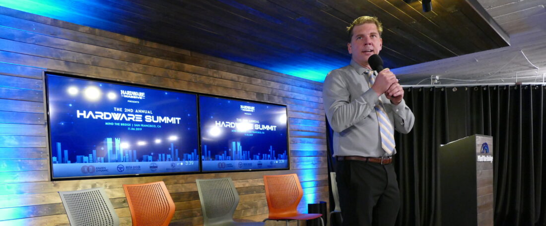 The second installment of Hardware Massive‘s Hardware Summit took place in San Francisco, at Mind the Bridge, on November 6, 2019. In spite of fires raging around the Bay Area complete with power outages, around 200 hardware nerds came out to connect and learn. There were three talks with experts in the physical product space who have seen things. These were interlaced with networking sessions and time to chat with hardware startups and service providers at booths encircling the space.