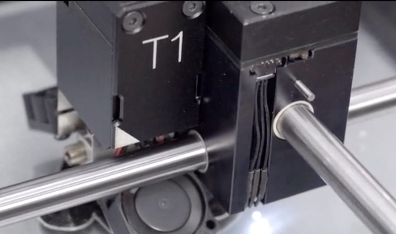 It’s for this reason many current vendors are developing single nozzle solutions, where two filaments are led toward one nozzle. The nozzle output is controlled by feeding (or not) each filament. However, there are delays each time the nozzle’s material is switched for purging.