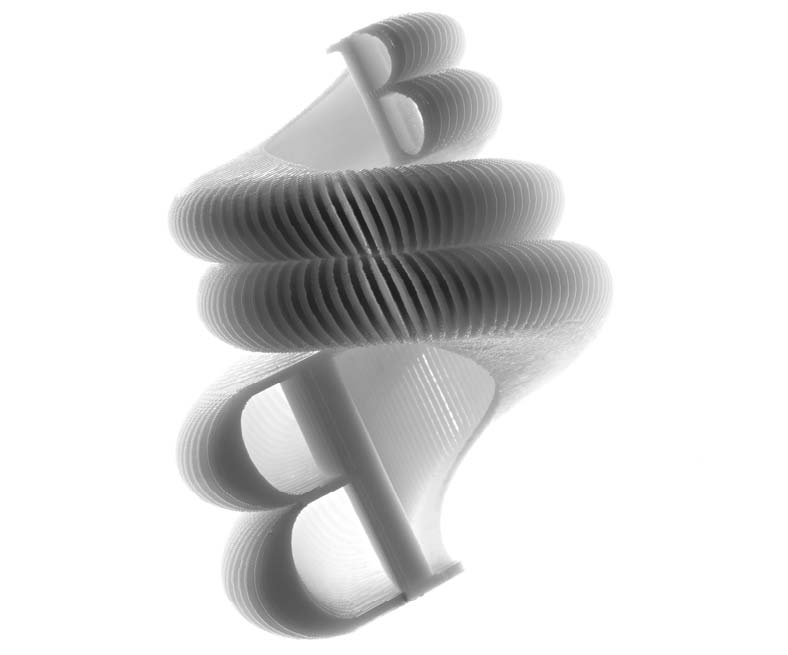 U – The first take on the letter ‘U’ took 90 hours to print. Due to the thicknesses being too small it fell apart. For the next print the walls were thickened and the part made more rigid by adding in more orbiting ‘U’s.