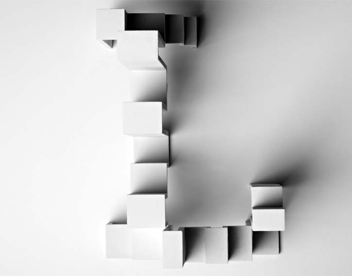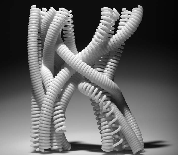 Each of the letters tell the history of the letter and the typeface in its own uniquely designed way. Some are obvious, some are not so obvious. The idea was originally developed as a means of testing and showcasing the school’s in-house 3D prototyping technology. Here is an animation of each letter, that illustrates the dimensional aspect and complex structure that can only be created through 3D printing.