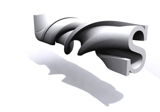S through to U – The letter ‘S’ through ‘U’ were modeled using a series of ajoining surfaces. Once created they were twisted within Rhino to obtain the effect of ‘S’ lofitng into ‘U’.