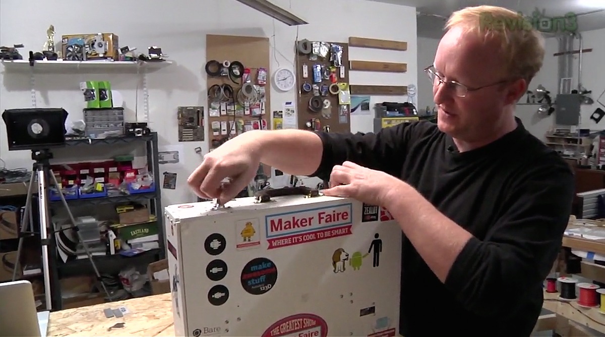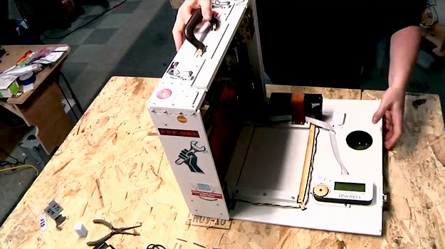 If it were up to me, everything important to sustaining life–computers, blenders, sinks, beer–would be kept and deployed via a briefcase, mostly for the effect of grabbing the briefcase in times of panic and letting everyone know, not to worry, you have your briefcase. Ben Heck has the same idea, and he has fit one of the most essential items for Making comfortably within the confines of a carrying case, ready to be covered in your favorite stickers.